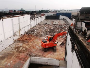 Desmontagem de 02 (dois) galpões comerciais com remoção dos entulhos para aterro legalizado, deixando o terreno limpo e desimpedido para o novo empreendimento.