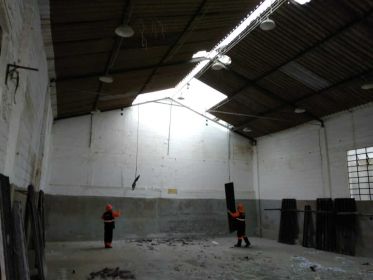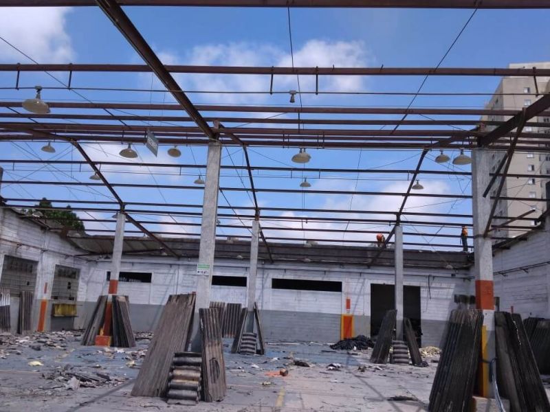 Demolição total de um galpão, segregação dos materiais reutilizáveis para reciclagem, remoção e transporte dos entulhos da demolição para aterro legalizado, deixando o terreno limpo e desimpedido para o novo empreendimento.