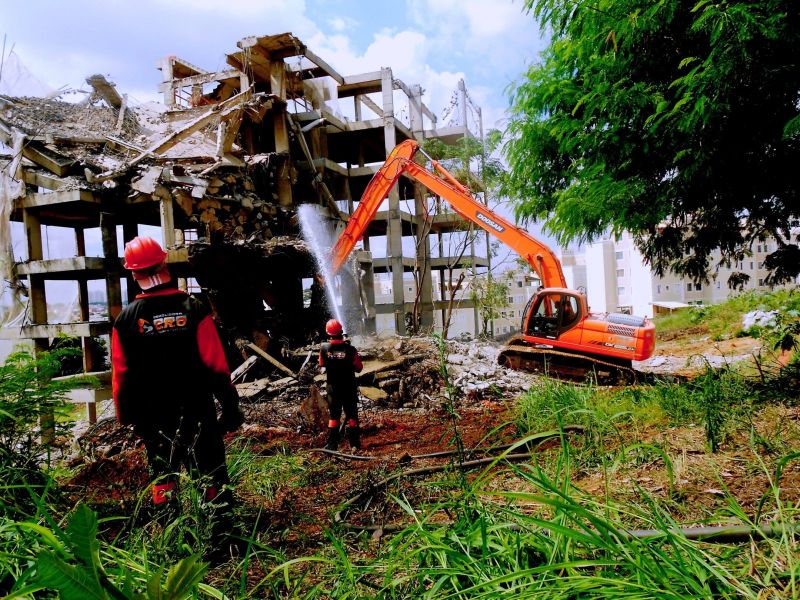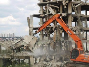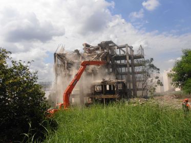 Demolição de um prédio de 11 andares em estrutura de concreto com remoção de todo entulho proveniente para aterro legalizado da região.