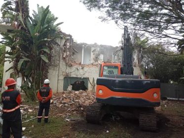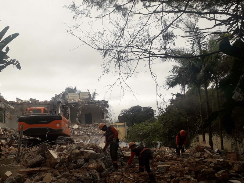 Consultoria para emissão de Alvará de demolição e regularização junto aos órgãos competentes. Demolição de uma edificação de 02 pavimentos e edículas, inclusive fundações superficiais (blocos e baldrames) demolição de subsolo, demolição de piscina, remoção e transporte dos entulhos para aterro legalizado.