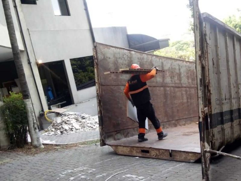 Desmontagem de mezanino metálico, demolição de lajes, paredes de alvenaria e remoção dos entulhos para aterros legalizados e usinas de reciclagem, conforme a classificação dos resíduos gerados. Serviços prestados no Aeroporto de Congonhas-SP.