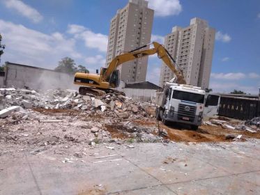 Demolição total de um galpão, segregação dos materiais reutilizáveis para reciclagem, remoção e transporte dos entulhos da demolição para aterro legalizado, deixando o terreno limpo e desimpedido para o novo empreendimento.