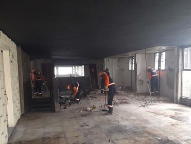 Demolição Retrofit; Demolição de paredes em alvenaria, rampas, lajes e pisos, com remoção dos entulhos para aterros legalizado, deixando as áreas limpas e desimpedidas para ampliação da mesma.